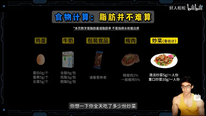 脂肪计算,前四者用薄荷即可,炒菜可额外添加植物油进去计算即可